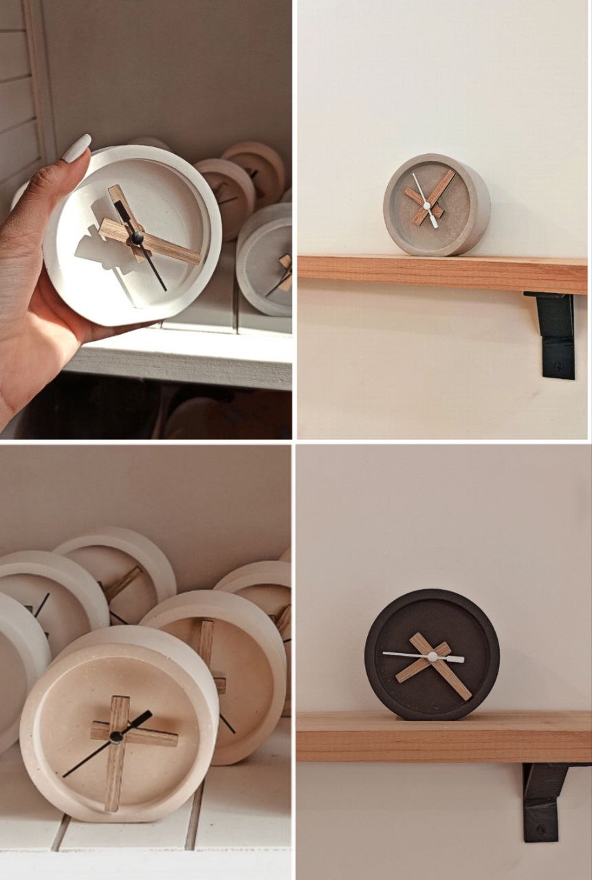 ساعت رومیزی گرد سفید مینیمال ساده ارزان خاص کوچک دکوری بتنی